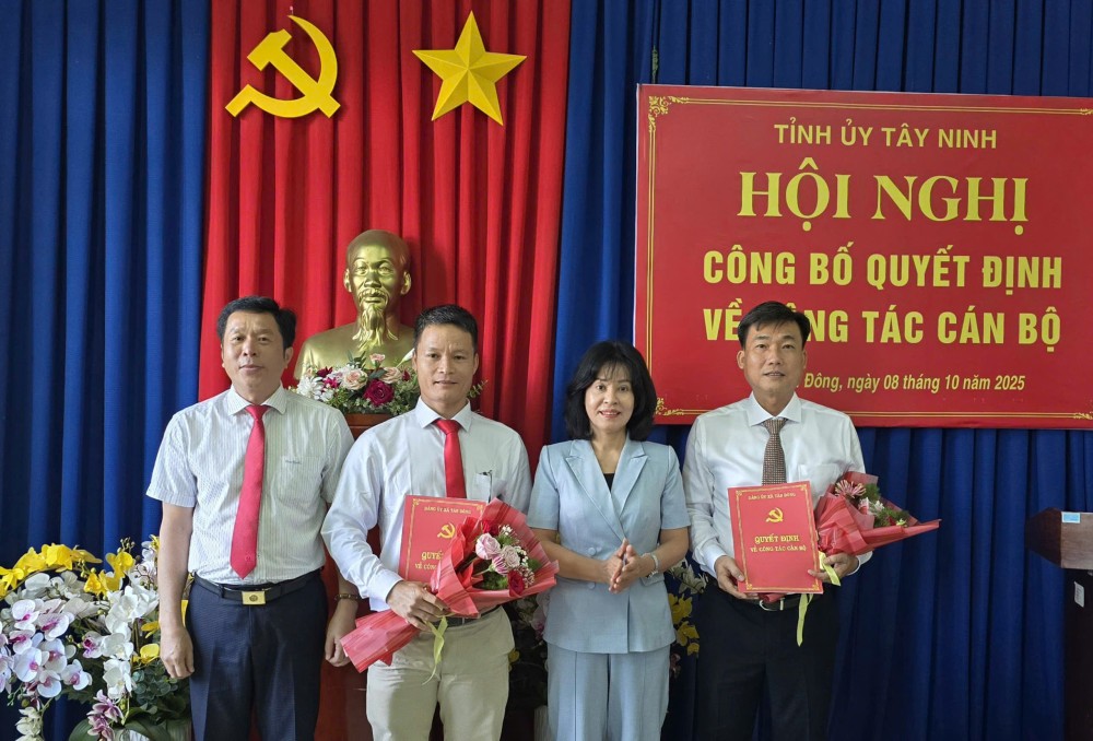 Đồng thời, hội nghị cũng công bố quyết định của Ban Thường vụ Tỉnh ủy chỉ định bổ sung Ban Chấp hành Đảng bộ xã Tân Đông nhiệm kỳ 2025-2030 đối với ông Hoàng Văn Huy – Giám đốc Ban Quản lý dự án đầu tư xây dựng khu vực 6 (thuộc Ban Quản lý dự án đầu tư xây dựng tỉnh Tây Ninh). Ông Hoàng Văn Huy được HĐND tỉnh chỉ định giữ chức vụ Phó Chủ tịch UBND xã Tân Đông, nhiệm kỳ 2021-2026. Các quyết định có hiệu lực kể từ ngày 03/10/2025.