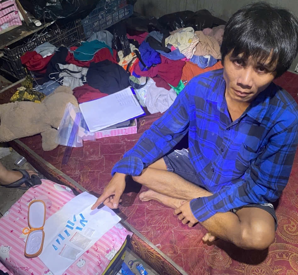 Tang vật thu giữ gồm: 1 túi nylon rãnh khép chứa tinh thể màu trắng nghi ma túy (ký hiệu M1); 2 túi nylon tương tự (ký hiệu M2); 11 đoạn ống nhựa chứa tinh thể trắng (ký hiệu M3); 1 bộ dụng cụ sử dụng trái phép chất ma túy hình con heo; 1 quẹt gas dạng khò; 1 kéo kim loại dài 9cm; 2 đoạn ống hút nhựa màu hồng và vàng; 1 túi khóa kéo màu vàng.