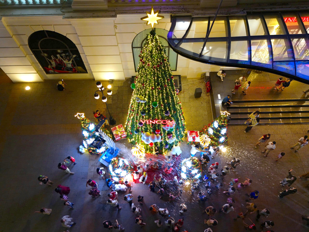 Năm nay, ngoài cây thông cao 5m, Trung tâm thương mại Vincom Plaza sắp xếp thêm 4 cây thông nhỏ xung quanh, trang trí đèn LED, ngôi sao, trái châu lấp lánh và các tiểu cảnh như gấu Giáng sinh, hộp quà, cầu tuyết,… trở thành địa điểm check in yêu thích cho người dân và du khách, mang đến không gian lễ hội vui tươi, thu hút trẻ em./.