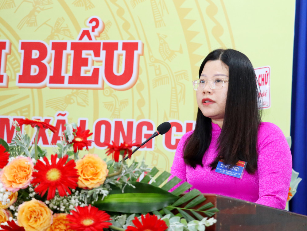 Phát biểu chỉ đạo tại Đại hội, Bí thư Đảng ủy, Chủ tịch HĐND xã Long Chữ Nguyễn Thị Thúy Nga đề nghị UBMTTQ Việt Nam xã tiếp tục đổi mới nội dung, phương thức hoạt động, đặc biệt tăng cường triển khai công tác chuyển đổi số trong tuyên truyền, vận động, quản lý, điều hành, kết nối và chia sẻ thông tin với chính quyền 2 cấp, bảo đảm tính đồng bộ, minh bạch, hiệu quả trong công tác tham mưu, giám sát, phản biện xã hội.
