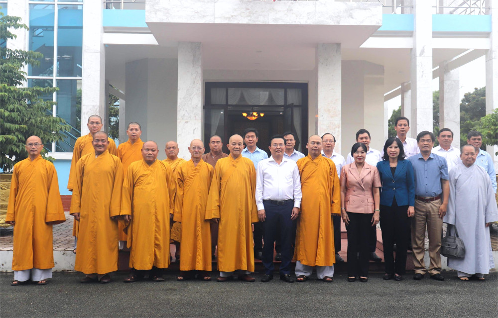 Phó Bí thư Tỉnh ủy, Chủ tịch UBMTTQ Việt Nam tỉnh Nguyễn Thanh Hải tiếp đoàn Ban Trị sự Giáo hội Phật giáo Việt Nam tỉnh đến thăm