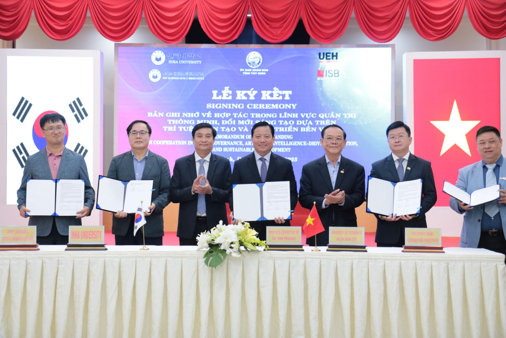 Sáng 12/12, UBND tỉnh Tây Ninh tổ chức Lễ ký kết Bản ghi nhớ hợp tác (MoU) với Đại học Inha (Hàn Quốc), Đại học Kinh tế TP.Hồ Chí Minh (UEH), Viện Đào tạo Quốc tế, Viện Nghiên cứu Chính sách & Quản trị Thông minh - Hàn Quốc.