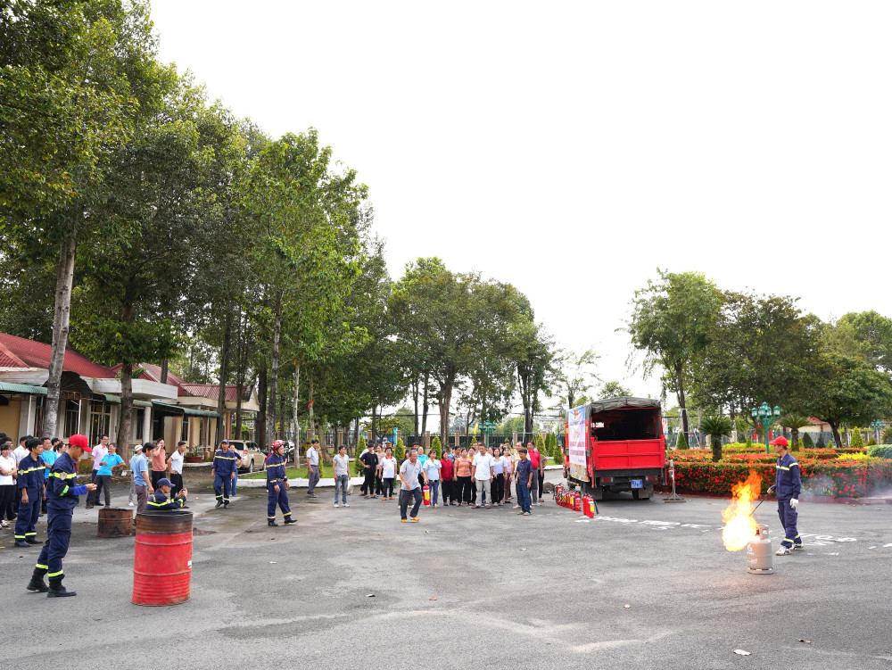 Đối với phần thực hành chữa cháy, các thành viên đội PCCC và CNCH cơ sở được hướng dẫn kỹ năng sử dụng các loại bình chữa cháy chuyên dụng cũng như các vật dụng phù hợp để dập tắt đám cháy, xử lý rò rỉ khí gas; thực tập phương án chữa cháy theo tình huống giả định tại trụ sở Văn phòng HĐND và UBND xã Tân Biên.