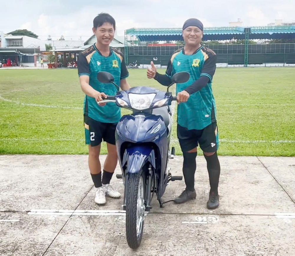 Trước giờ bóng lăn, Ban tổ chức và các nhà hảo tâm trao tặng một chiếc xe máy Wave Alpha trị giá 20 triệu đồng cho em Nguyễn Phước Lộc, ngụ phường Long An, tỉnh Tây Ninh.