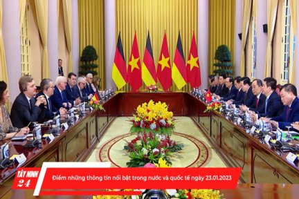Nhận lời mời của Chủ tịch nước Cộng hòa xã hội chủ nghĩa Việt Nam Võ Văn Thưởng và phu nhân, Tổng thống Cộng hòa Liên bang (CHLB) Đức Frank-Walter Steinmeier ((Phờ-răng Van-thơ Xtai-mai-ơ) và phu nhân thăm cấp nhà nước đến Việt Nam từ ngày 23 đến 24-1. Chiều nay, Lễ đón chính thức đã được tổ chức tại Phủ Chủ tịch. Chủ tịch nước Võ Văn Thưởng chủ trì lễ đón. Ngay sau lễ đón, Chủ tịch nước Võ Văn Thưởng đã hội đàm với Tổng thống Đức Frank-Walter Steinmeier (Phờ-răng Van-thơ Xtai-mai-ơ).