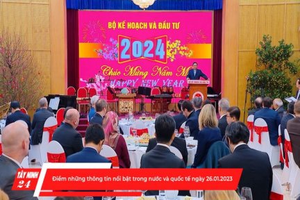 Xin kính chào quý độc giả đến với chương trình tổng hợp tin tức hàng ngày của Báo Tây Ninh Online. Bản tin được phát vào lúc 21 giờ hàng ngày. Sau đây mời quý độc giả đến với thông tin của ngày 26.01.2024.