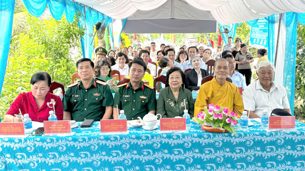 Tham dự có Trung tướng Phan Văn Việt-nguyên Chính ủy Tổng cục 2; bà Nguyễn Thị Hoài Thu, Nguyên Ủy viên Ban chấp hành Trung ương Đảng, nguyên Chủ nhiệm các vấn đề xã hội của Quốc hội; Đại tá Nguyễn Tấn Linh-Phó Tư lệnh Bộ Tư lệnh Quân khu 7; Thiếu tướng Phạm Văn Rậm, Phó Tư lệnh TP.HCM, cùng lãnh đạo các xã Nhơn Ninh, Nhơn Hòa Lập, Hậu Thạnh và Tân Thạnh.