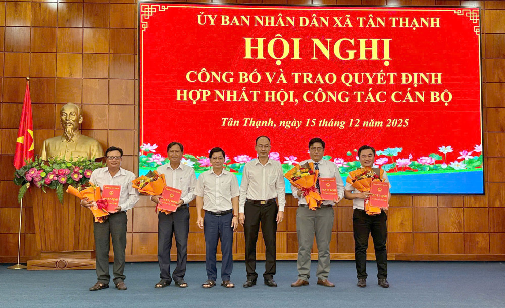 Đồng thời, trao Quyết định của UBND xã cho phép hợp nhất Hội Người cao tuổi các xã Tân Hòa, Tân Bình, Kiến Bình và thị trấn Tân Thạnh (cũ) thành Hội Người cao tuổi xã Tân Thạnh; công nhận ông Ngô Văn Quang - nguyên Chủ tịch Hội Người cao tuổi xã Kiến Bình, giữ chức Chủ tịch Hội Người cao tuổi xã Tân Thạnh.