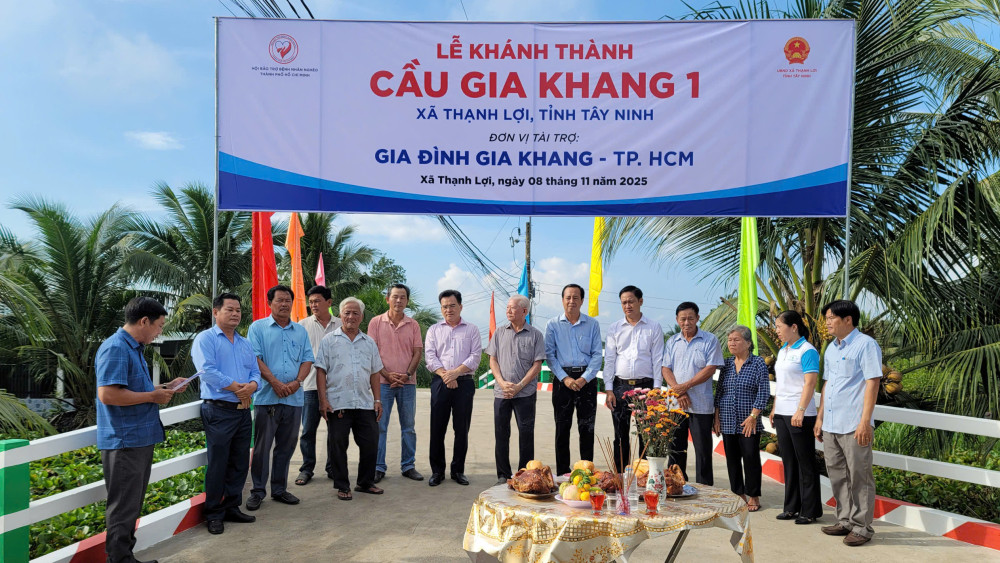 Ngày 08/11, UBND xã Thạnh Lợi, tỉnh Tây Ninh, tổ chức Lễ khánh thành công trình cầu Gia Khang 1. Lãnh đạo Đảng ủy, UBND xã, đại diện đơn vị tài trợ và người dân trong khu vực tham dự.