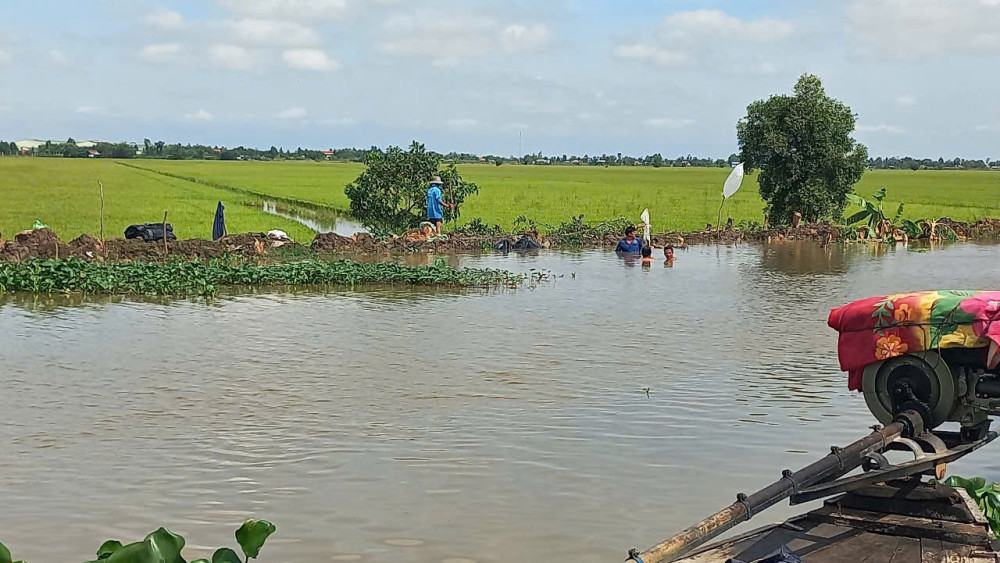 Mực nước tiếp tục tăng nhanh, 1 đê bao bảo vệ lúa trên địa bàn xã Tuyên Bình, tỉnh Tây Ninh bị vỡ, làm thiệt hại hoàn toàn 60ha lúa của người dân.
