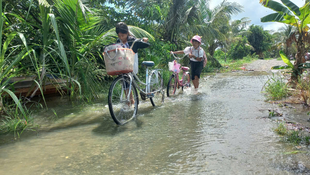 Bên cạnh đó, có 3 tuyến đường giao thông bị hư hỏng, ngập nước, sụp lún làm ảnh hưởng đến việc đi lại của người dân, học sinh đến trường. Trong đó, tuyến Đường tỉnh 837B bị ngập khoảng 200m, độ sâu từ 5-20cm; tuyến đường bờ Đông kênh Ngang ngập khoảng 50m, độ sâu từ 5-15cm; tuyến đường bờ Tây kênh Ngang ngập khoảng 1,5km, độ sâu từ 5-30cm.