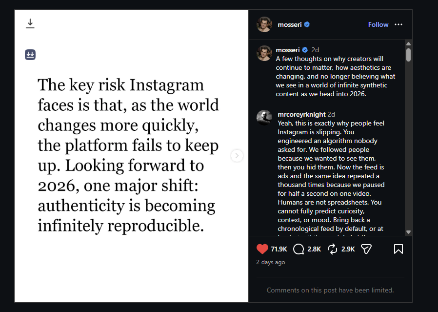 Instagram đối mặt thách thức xác thực nội dung khi AI ngày càng tràn lan