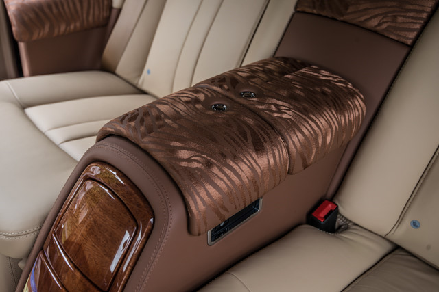 Họa tiết mô phỏng lông hổ xuất hiện trên tỳ tay hàng ghế sau.