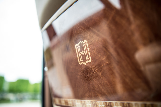 Sự cầu kỳ về logo chủ xe được Rolls-Royce cực kỳ chú trọng. Huy hiệu chữ H lồng được vẽ tay trên thân xe tiếp nối với đường kẻ dọc thân xe (coach line) và trên mặt gỗ bảng điều khiển trung tâm. Rolls-Royce Bespoke đã phác thảo các phiên bản thiết kế khác nhau, trình bày ý nghĩa và lấy ý kiến khách hàng trước khi phiên bản huy hiệu hoàn hảo nhất được chọn và giao cho đích thân nghệ nhân tài hoa Mark Court đích thân chấp bút vẽ bằng tay.