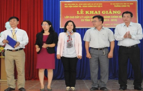 (BTNO)- Sáng 31.12, tại Trường Chính trị tỉnh, Ban Tổ chức Tỉnh ủy phối hợp với Học viện Chính trị - Hành chính Khu vực II tổ chức lễ khai giảng lớp cao cấp lý luận chính trị - hành chính hệ tại chức C9 tỉnh Tây Ninh, niên khóa 2013-2015.
