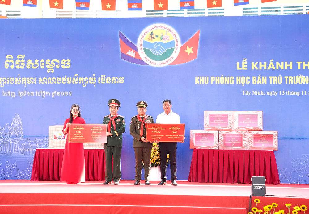 Giao lưu hữu nghị quốc phòng biên giới Việt Nam – Campuchia lần thứ 2 Khánh thành khu phòng học bán trú Trường Tiểu học Bến Cầu
