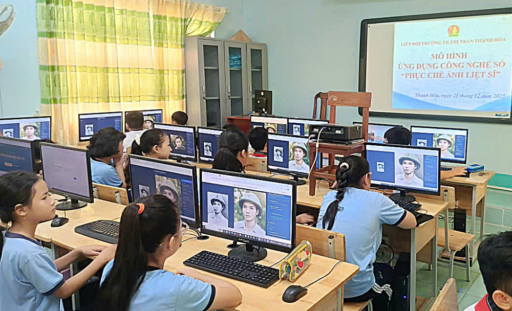 Khi học sinh tiểu học phục chế ảnh liệt sĩ