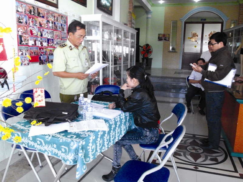 Kiểm tra đại lý Thiên Ngọc Minh Uy tại huyện Gò Dầu.