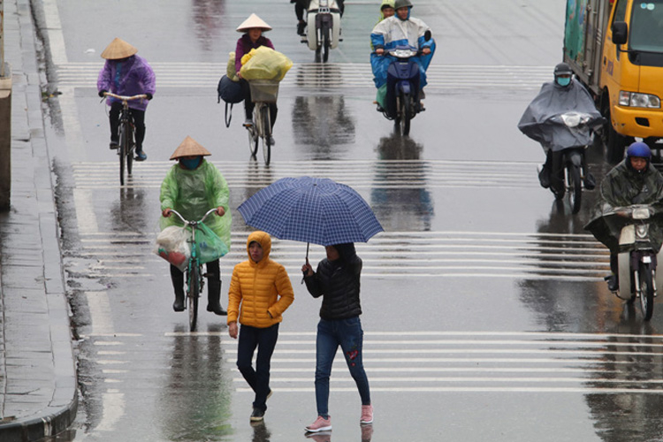 Không khí lạnh tăng cường gây mưa ở Bắc Bộ và Trung Trung Bộ
