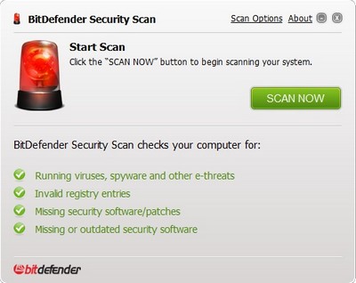 BitDefender Security Scan là phần mềm miễn phí của hãng bảo mật danh tiếng BitDefender, cho phép kiểm tra toàn diện hệ thống, để cung cấp thông tin về tốc độ, mức độ ổn định và các vấn đề bảo mật gặp phải trên hệ thống. Ngoài ra, phần mềm còn giúp người dùng kiểm tra xem phần mềm bảo mật đang có trên hệ thống hoạt động có hiệu quả hay không.