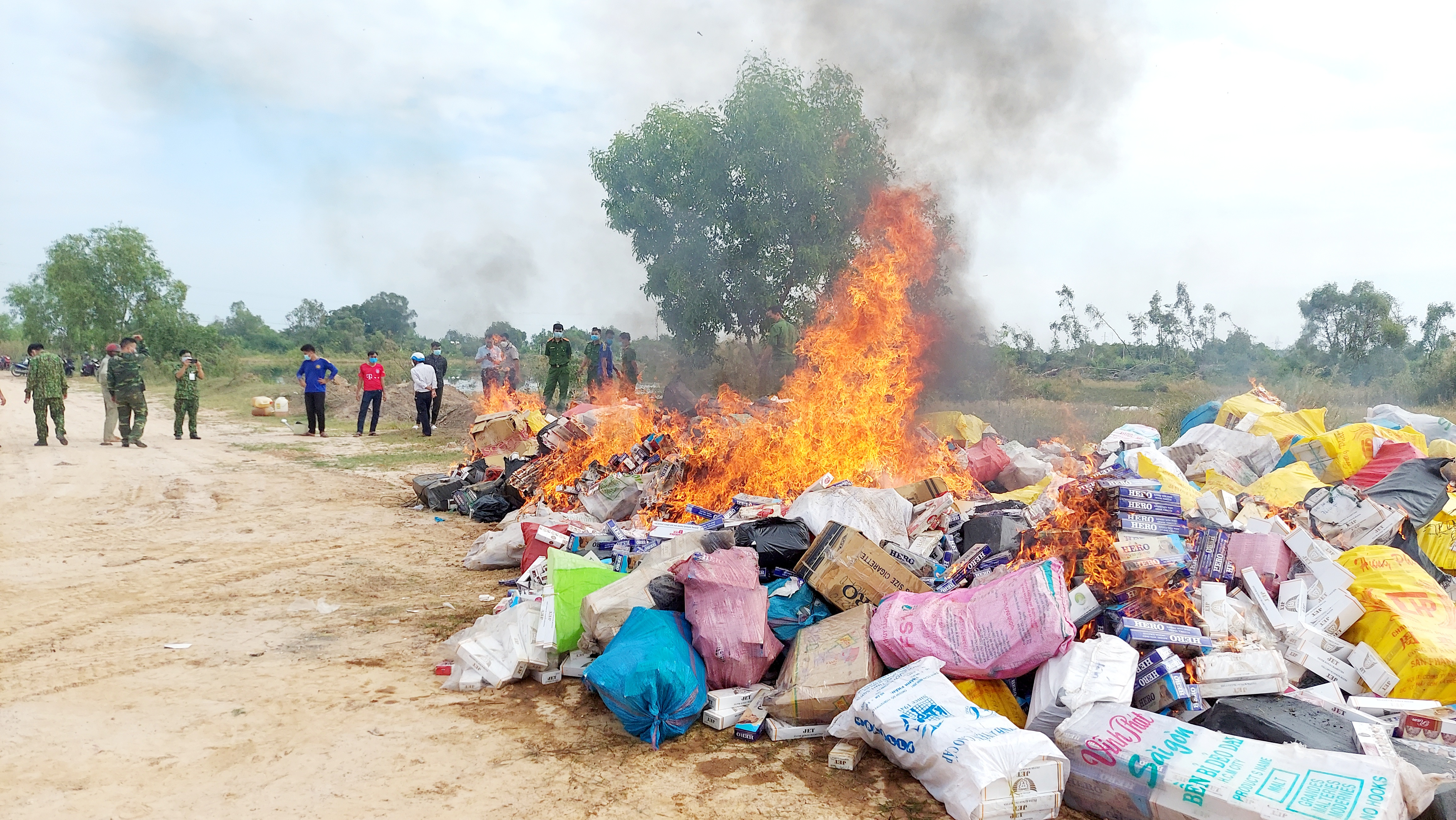 Kiến Tường: tiêu hủy trên 190 ngàn gói thuốc lá ngoại nhập lậu