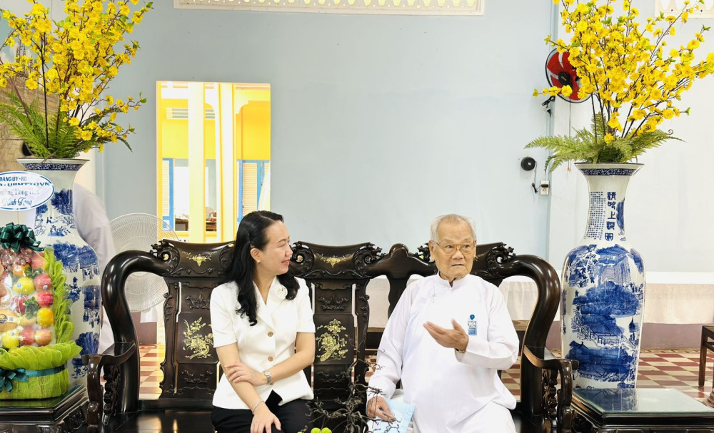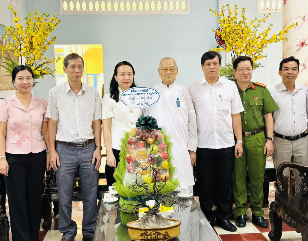 Bí thư Đảng ủy, Chủ tịch HĐND phường Long Hoa Nguyễn Thị Thu Hiền gửi lời thăm hỏi và chúc mừng đến ngài Đầu sư Thượng Tám Thanh