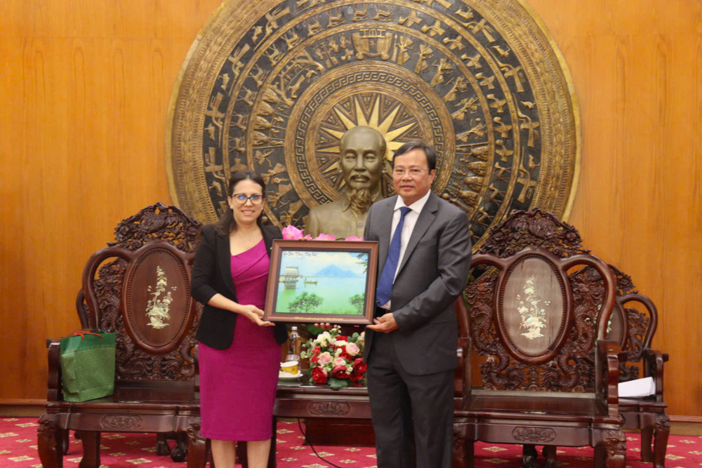 Chiều 27/11, Phó Bí thư Tỉnh ủy, Chủ tịch UBND tỉnh Tây Ninh Lê Văn Hẳn có buổi tiếp bà Ariadne Feo Labrada - Tổng Lãnh sự Cộng hòa Cuba tại TP.Hồ Chí Minh trong chuyến thăm và chào từ biệt, nhân dịp bà Ariadne Feo Labrada kết thúc nhiệm kỳ công tác tại Việt Nam.