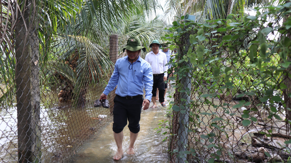 Ngày 24/10, Bí thư Đảng ủy xã Bến Lức (tỉnh Tây Ninh) Nguyễn Đăng Minh Xuân, Chủ tịch UBND xã Nguyễn Thành Nam, các ban, ngành có liên quan có mặt tại các điểm nước tràn đê do ảnh hưởng triều cường để khảo sát tình hình và chỉ đạo khẩn trương khắc phục.