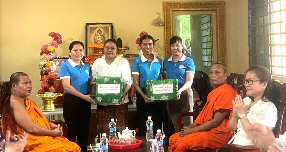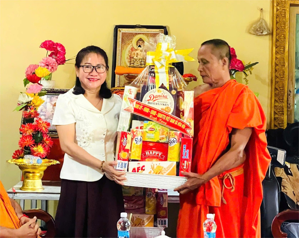 Lãnh đạo xã Hòa Hội thăm, chúc mừng lễ Sen Dolta của đồng bào Khmer