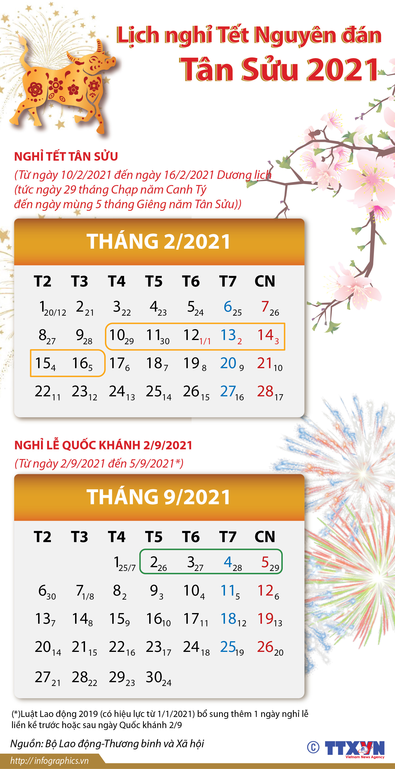 Lịch nghỉ Tết Nguyên đán Tân Sửu 2021
