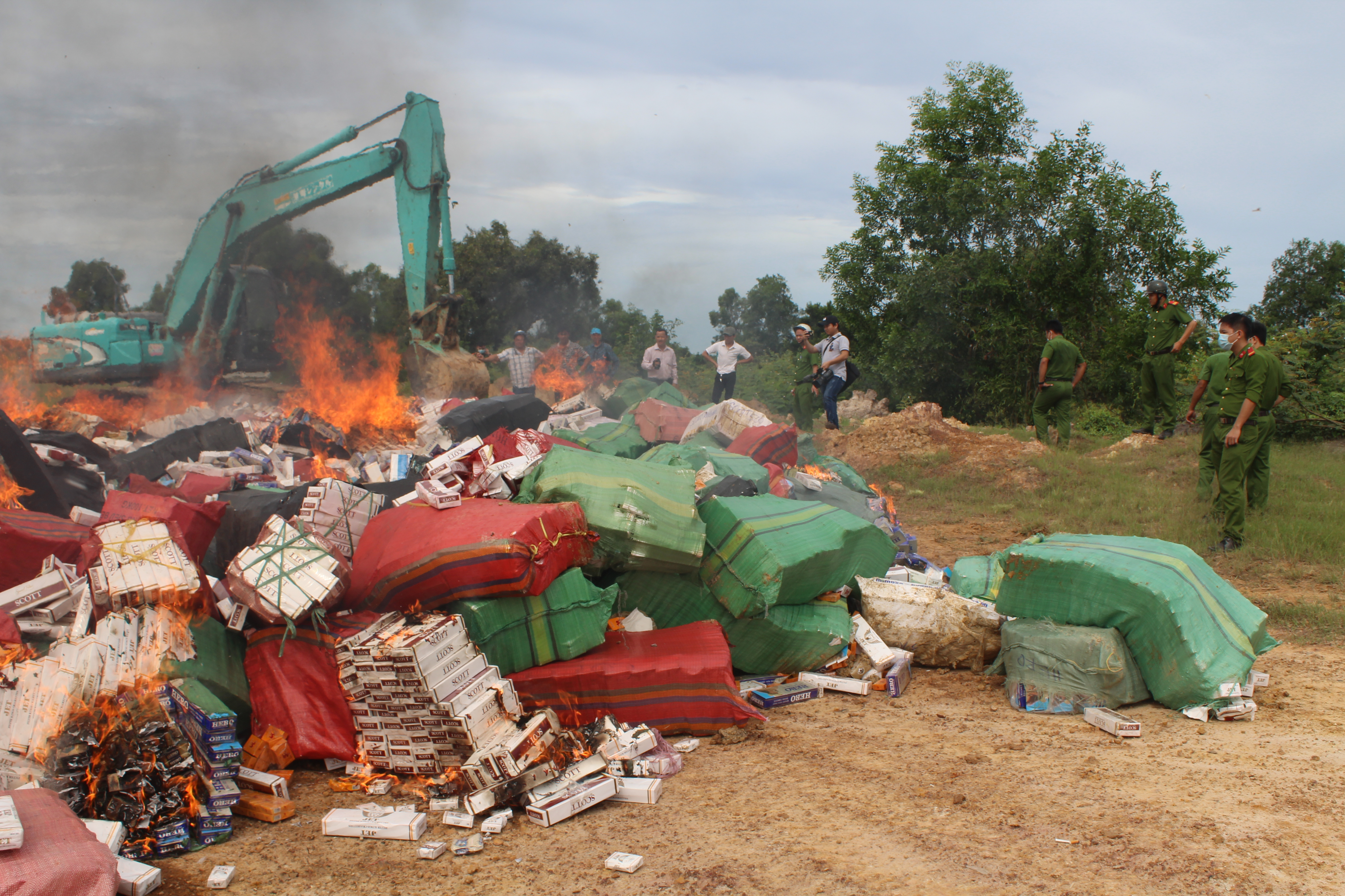Long An tiêu hủy trên 240.000 gói thuốc lá ngoại nhập lậu