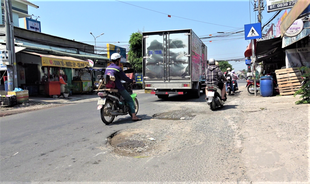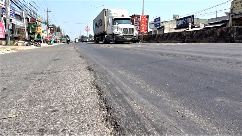 Mặt đường xuống cấp, nguy cơ mất an toàn giao thông tại ngã tư Nông Trường