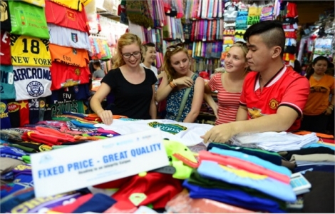 Khách du lịch nước ngoài mua sắm tại chợ Bến Thành - Ảnh: QUANG ĐỊNH |