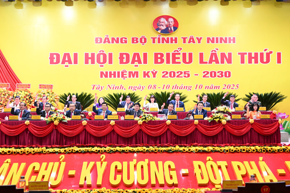 Với khẩu hiệu hành động “Đoàn kết - Dân chủ - Kỷ cương - Đột phá - Phát triển”, Đại hội đại biểu Đảng bộ tỉnh Tây Ninh lần thứ I, nhiệm kỳ 2025-2030 diễn ra trong 3 ngày (từ ngày 08 đến ngày 10/10/2025). Đây là sự kiện chính trị trọng đại của tỉnh, có ý nghĩa lịch sử sau khi 2 tỉnh Tây Ninh và Long An hợp nhất từ ngày 01/7/2025, mở ra dấu mốc cho một chặng đường phát triển mới, toàn diện và bền vững