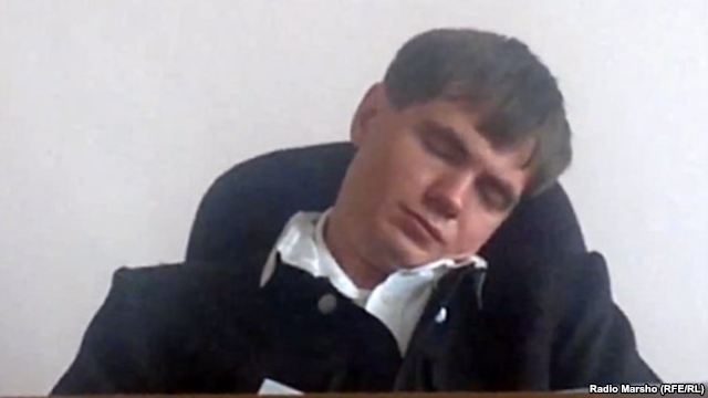 Vị thẩm phán Yevgeny Makhno không cưỡng lại được cơn buồn ngủ và đã ngủ gật, trong lúc luật sư bào chữa đang cố biện hộ cho bị cáo.