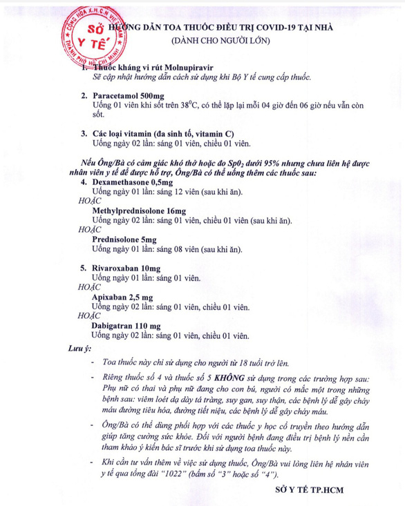 Ngành y tế TP Hồ Chí Minh hướng dẫn toa thuốc điều trị COVID-19 tại nhà