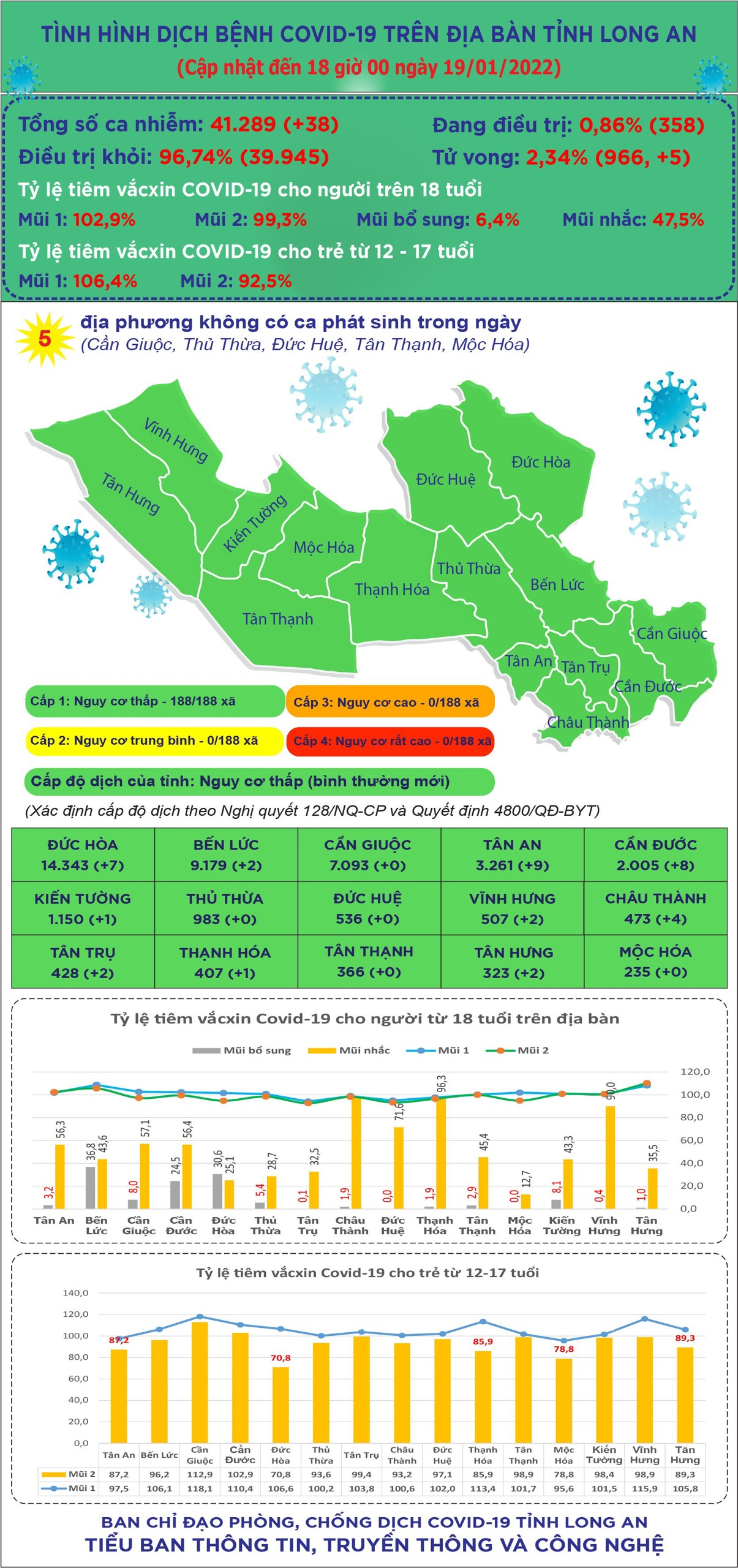 Ngày 19/1, Long An ghi nhận thêm 38 ca mắc mới COVID-19