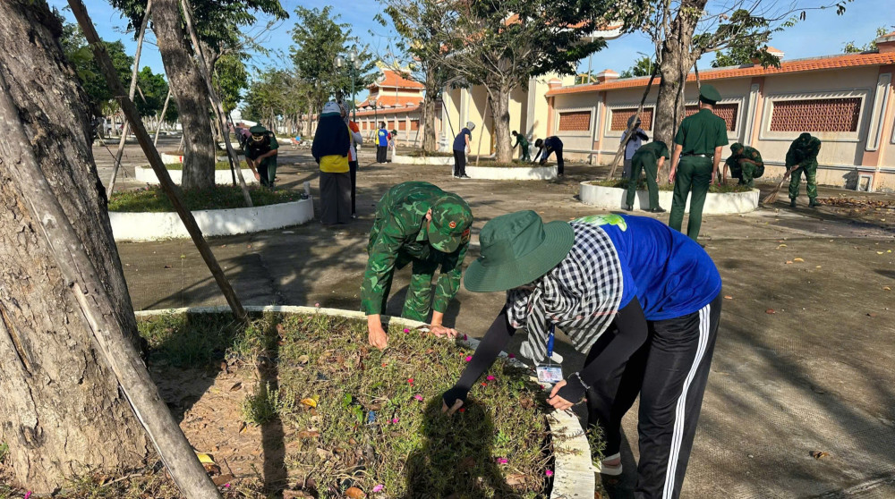 Với sự tham gia của gần 50 cán bộ, đoàn viên, thanh niên và sinh viên từ Chi đoàn Đồn Biên phòng Long Khốt, Đoàn Thanh niên xã Tuyên Bình và Đoàn Trường Đại học Mở TP.HCM, hoạt động diễn ra sôi nổi và thiết thực. Các lực lượng cùng dọn dẹp khuôn viên, thu gom rác thải, trồng hoa và cắt tỉa cây cảnh, tạo nên một diện mạo khang trang, sạch đẹp cho khu di tích.