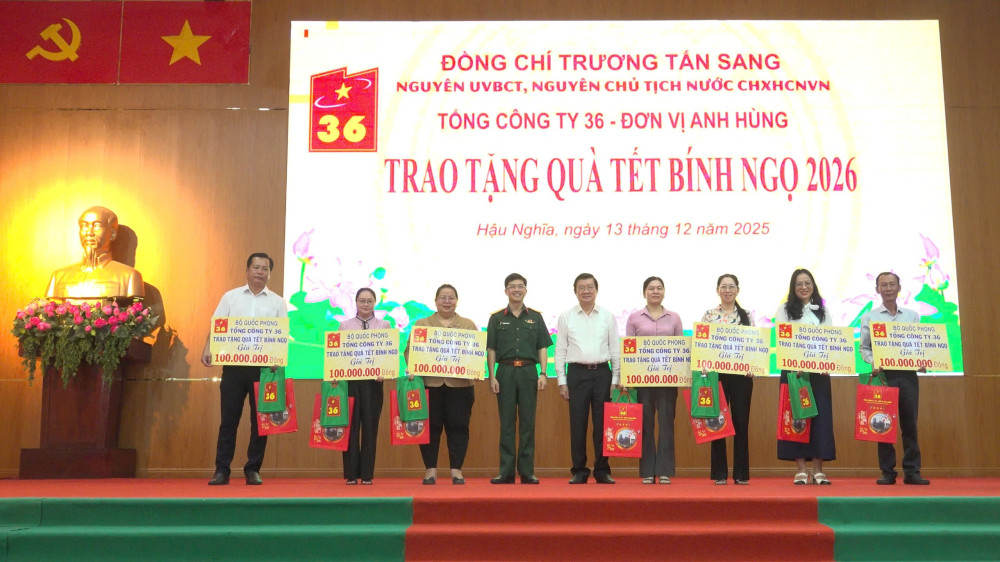 Sáng 13/12, tại xã Hậu Nghĩa, tỉnh Tây Ninh, nguyên Chủ tịch nước Trương Tấn Sang cùng Tổng Công ty 36 trao quà Tết Bính Ngọ năm 2026 cho 7 xã thuộc khu vực Đức Hòa.