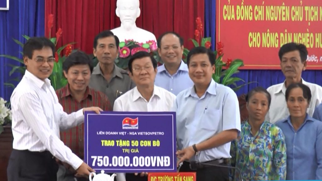Nguyên Chủ tịch nước Trương Tấn Sang trao tặng bò giống cho hộ nghèo tại huyện Cần Đước