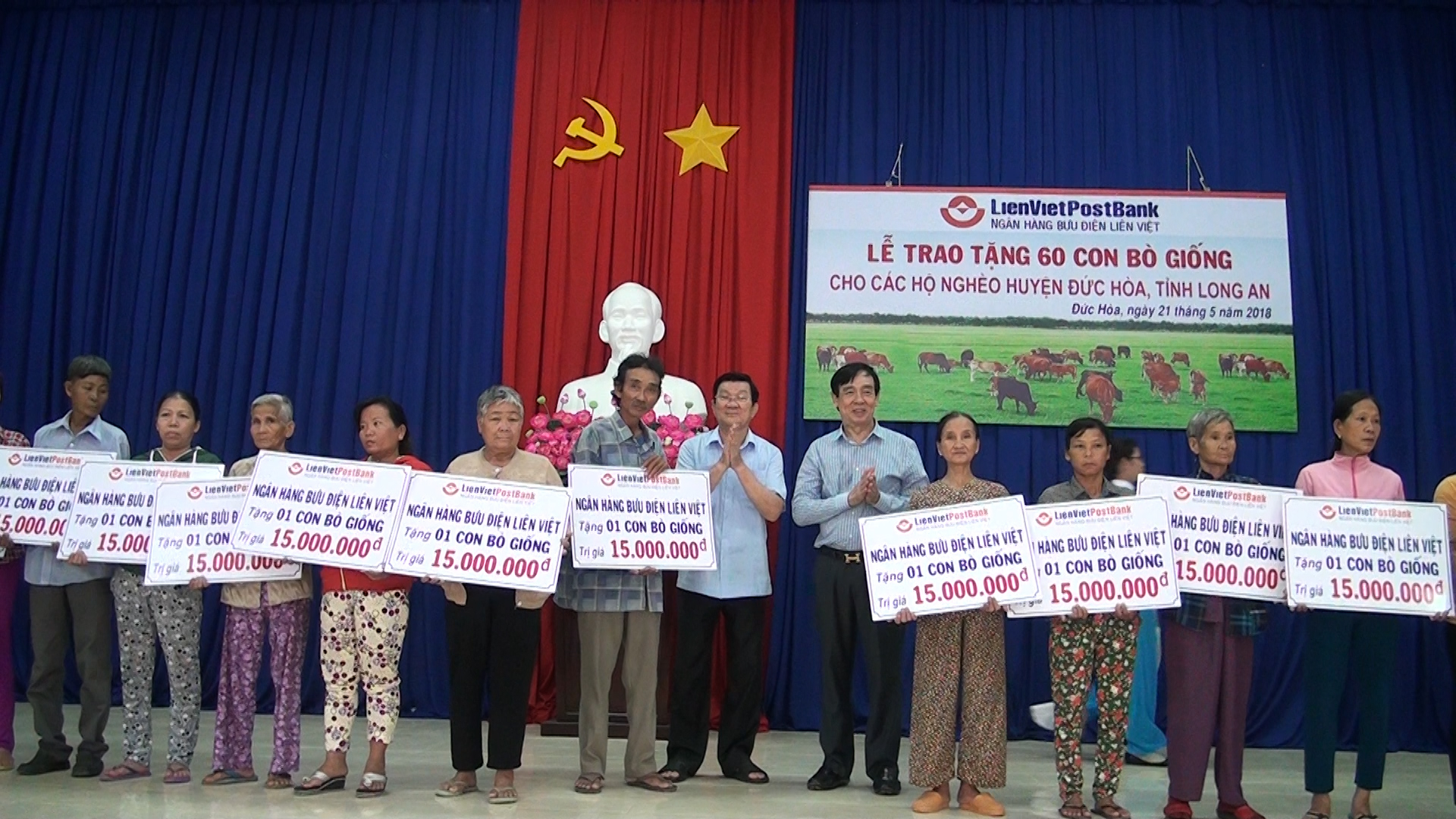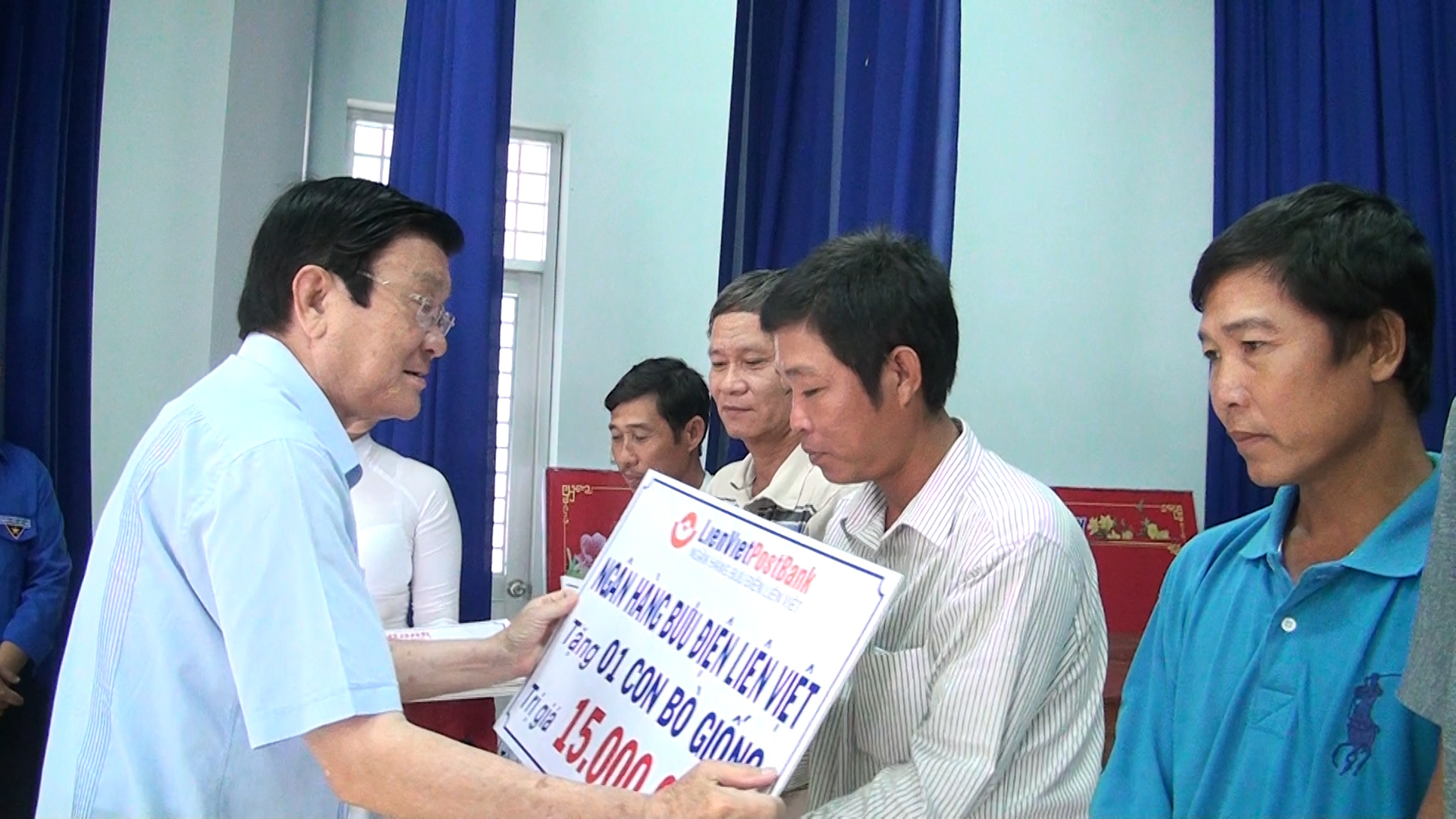 Nguyên chủ tịch nước Trương Tấn Sang trao tặng kinh phí mua bò giống cho các hộ nghèo