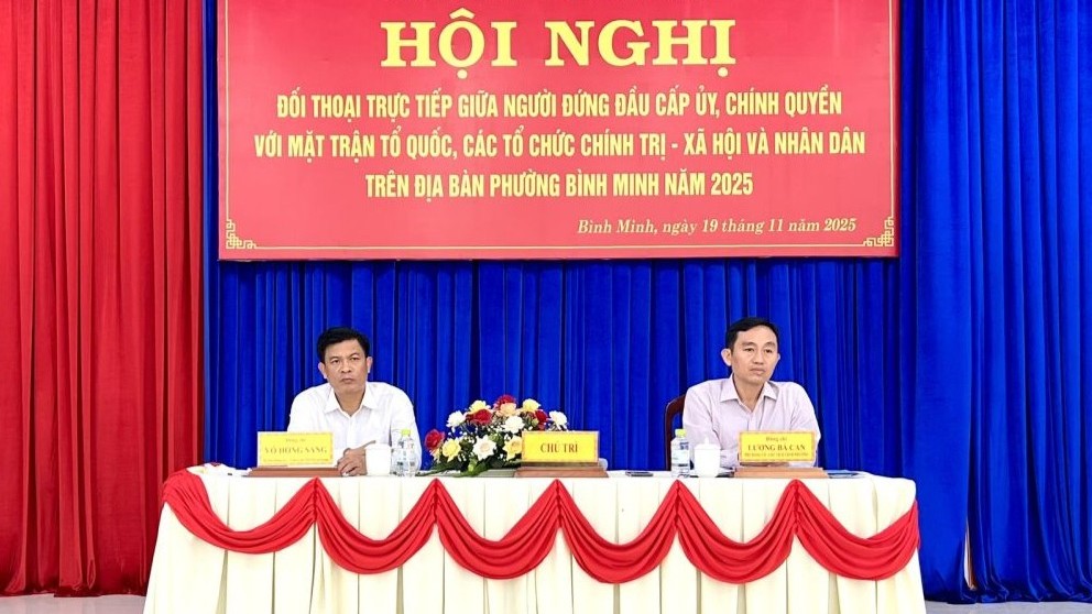 (BTNO) - Sáng 19/11, Đảng ủy phường Bình Minh, tỉnh Tây Ninh, tổ chức Hội nghị đối thoại giữa người đứng đầu cấp ủy, chính quyền với MTTQ, các tổ chức chính trị - xã hội và người dân trên địa bàn phường năm 2025.