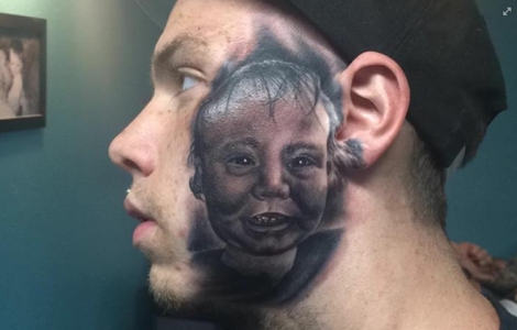 Theo đó, anh Christien đã quyết định xăm hình mặt cậu con trai lên má trái của mình.