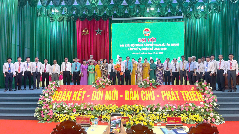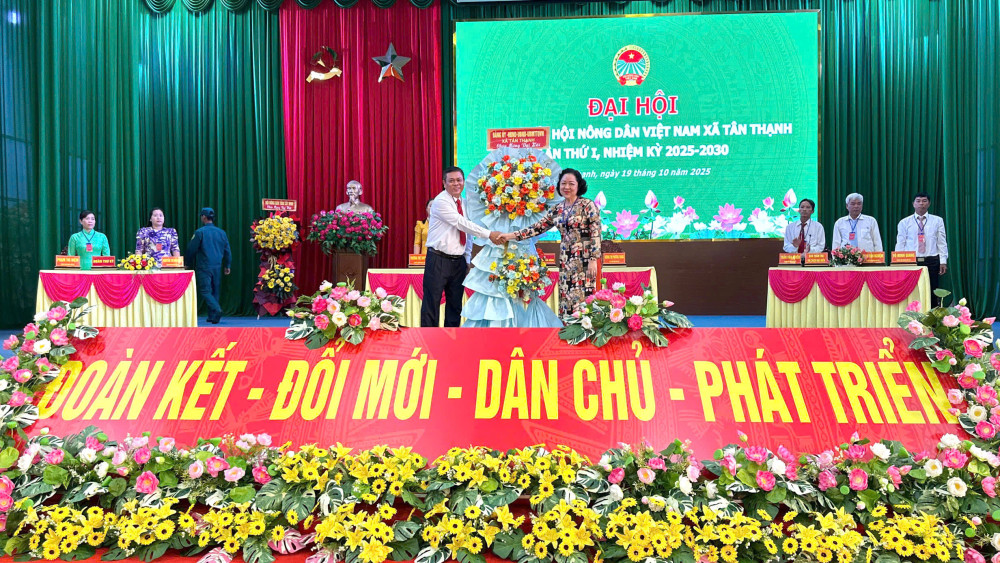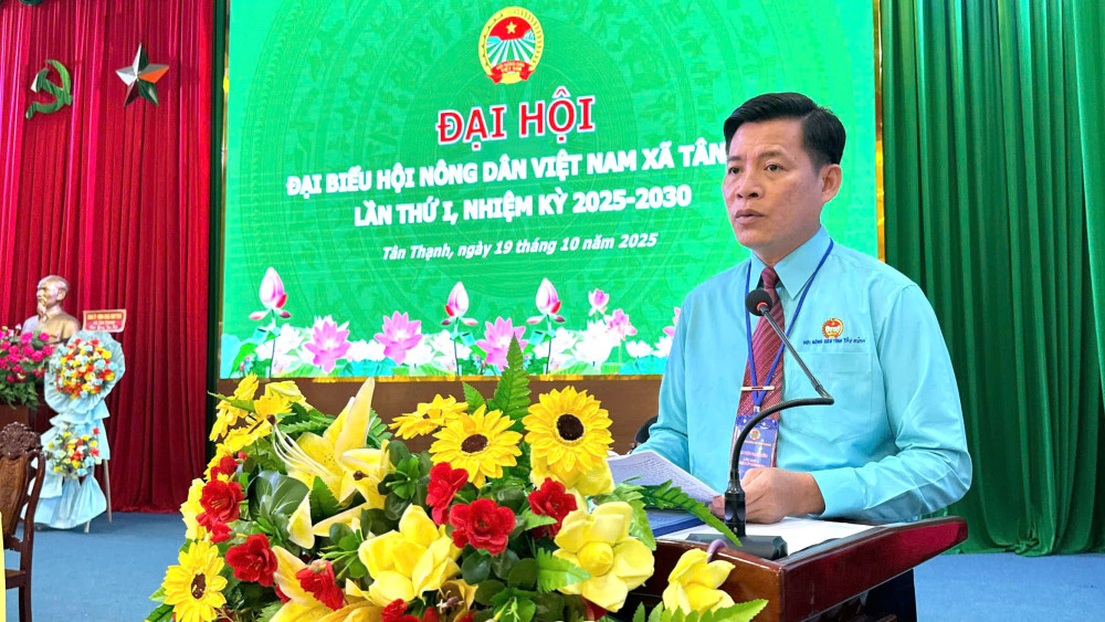 Đại hội đại biểu Hội Nông dân xã Tân Thạnh lần thứ I, nhiệm kỳ 2025-2030 xác định nhiều chỉ tiêu cụ thể: Phấn đấu có 1.850 hộ đạt danh hiệu sản xuất, kinh doanh giỏi các cấp; có 2 sản phẩm OCOP đạt 3 sao trở lên; vận động 100% hội viên tham gia bảo hiểm xã hội tự nguyện; phối hợp vận động và bảo lãnh cho nông dân vay vốn từ 50 đến 60 tỉ đồng.