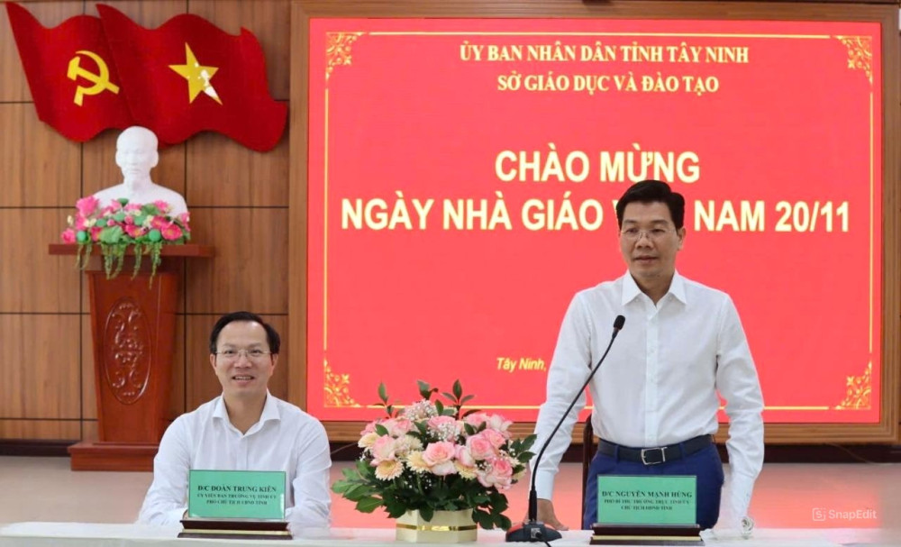 Dịp này, Ủy viên Ban Thường vụ Tỉnh ủy, Phó Chủ tịch UBND tỉnh Tây Ninh Đoàn Trung Kiên gửi lời thăm hỏi ân cần, chúc mừng hơn 32.000 viên chức ngành Giáo dục tỉnh Tây Ninh.