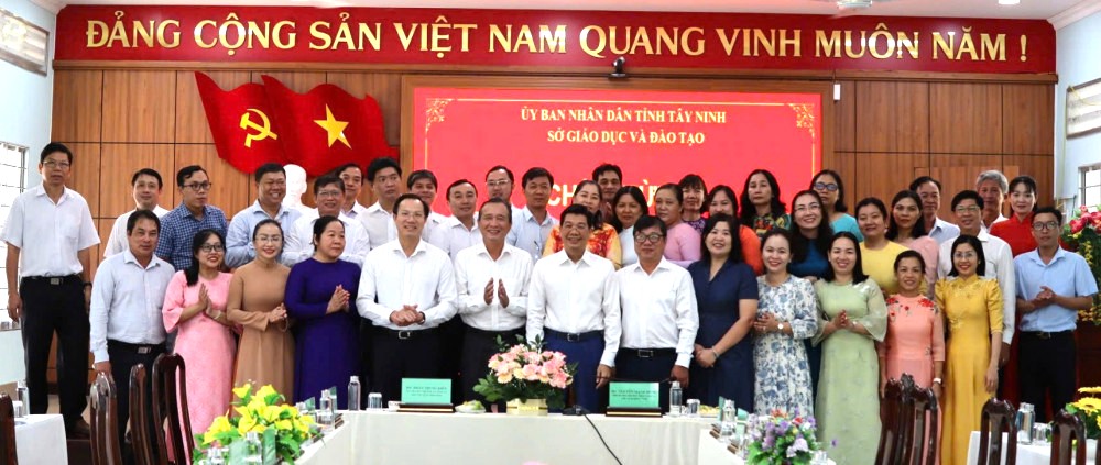 Đoàn công tác và tập thể Ban Giám đốc, cán bộ, viên chức Sở Giáo dục và Đào tạo tỉnh Tây Ninh