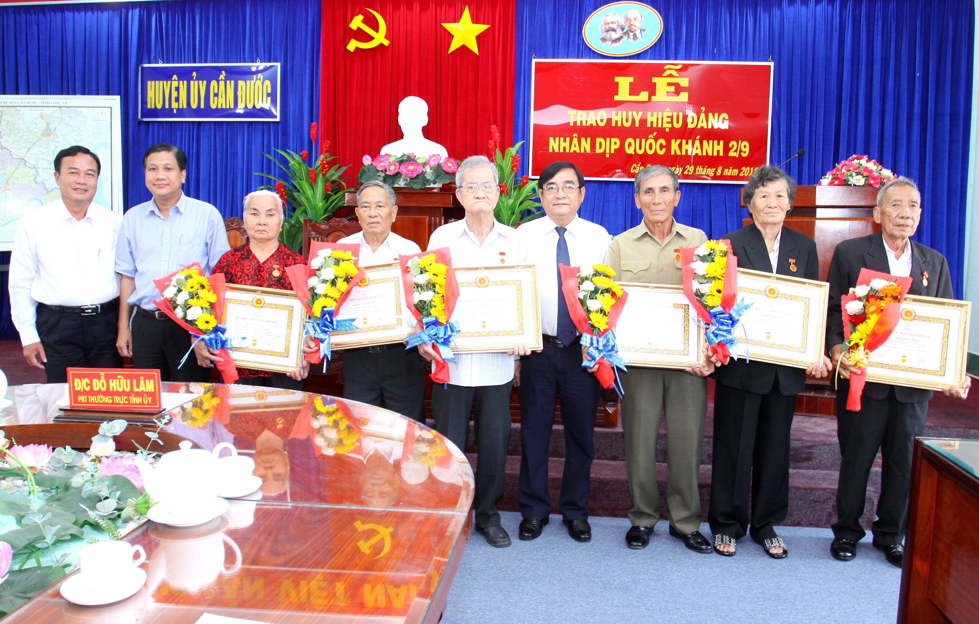 Phó Bí thư Thường trực Tỉnh ủy Long An Đỗ Hữu Lâm trao huy hiệu Đảng tại Cần Đước
