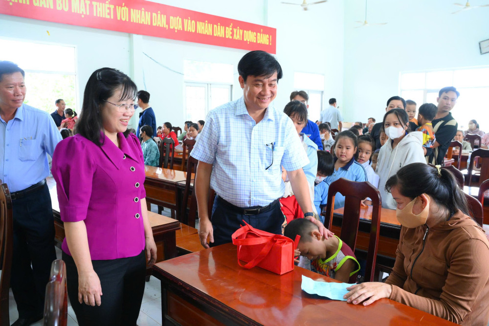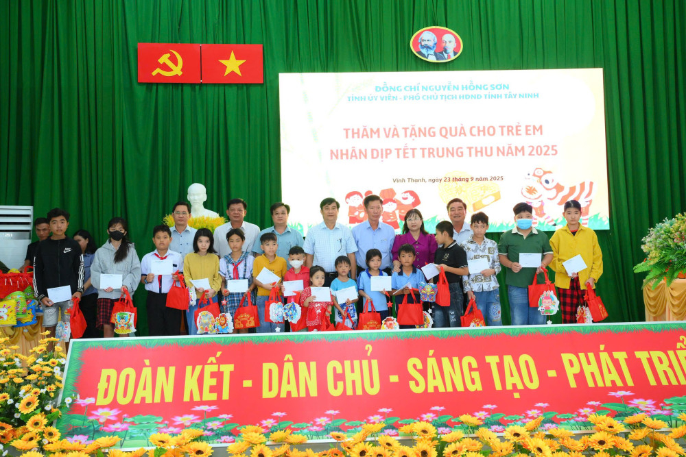 Phó Chủ tịch HĐND tỉnh Nguyễn Hồng Sơn tặng quà Trung thu cho trẻ em tại xã Vĩnh Thạnh