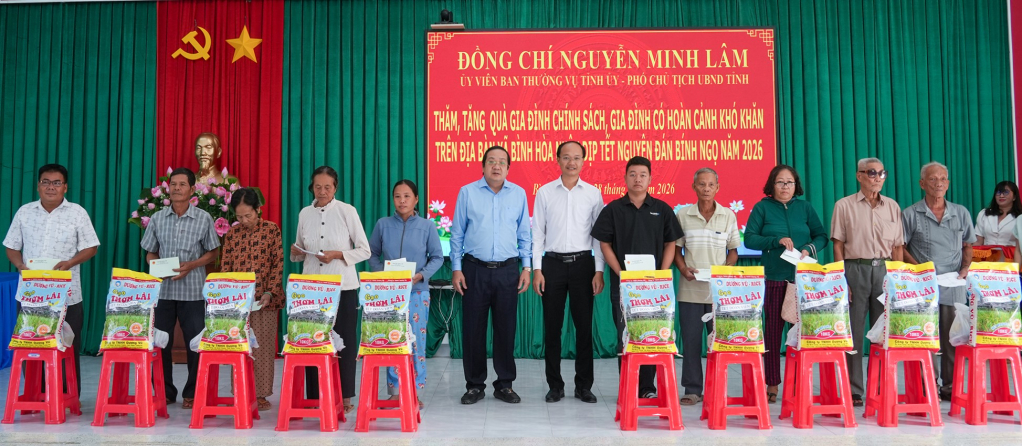 Phó Chủ tịch UBND tỉnh Nguyễn Minh Lâm thăm, tặng quà tại xã Bình Hòa