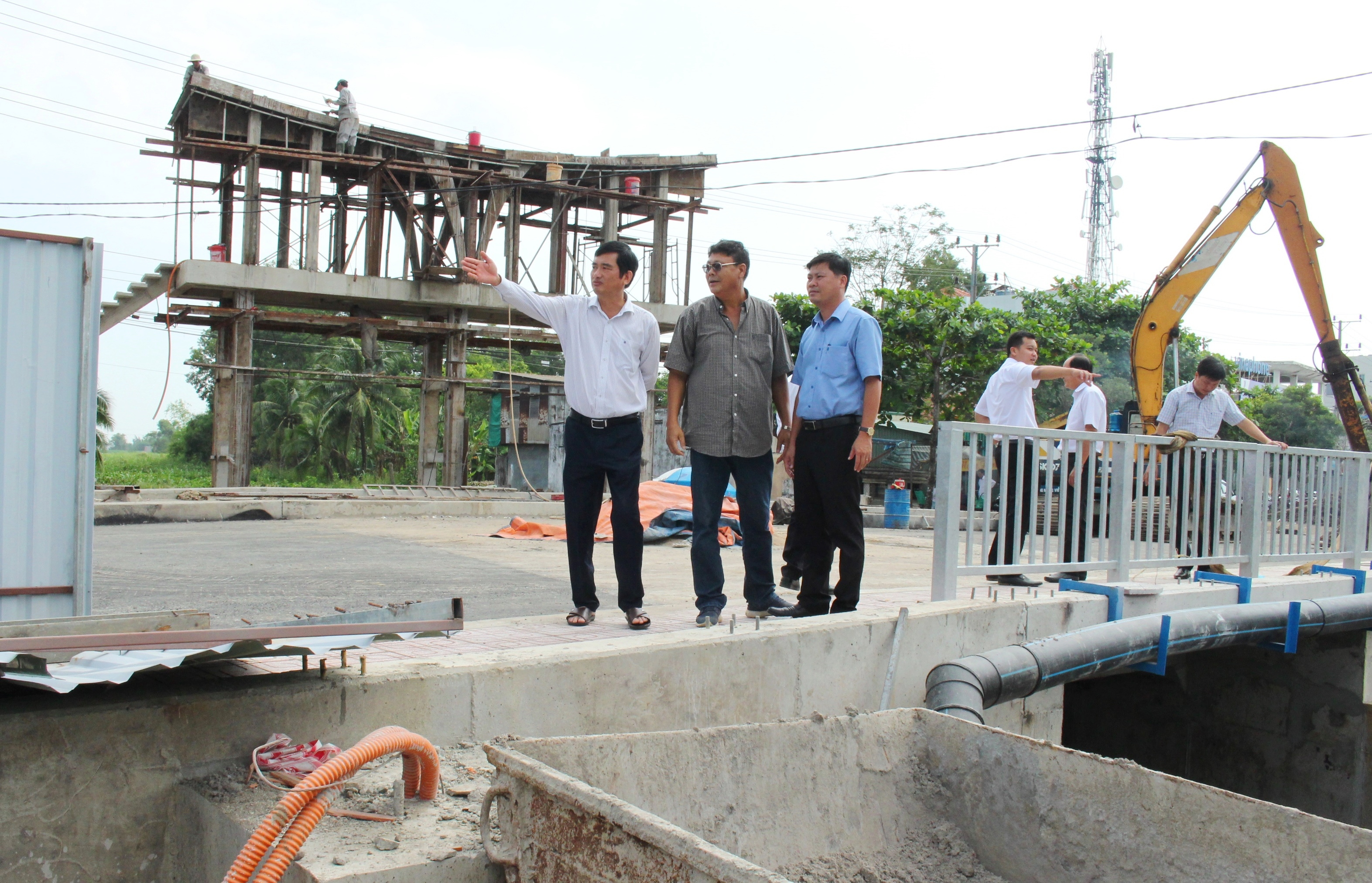 Phó chủ tịch UBND tỉnh Phạm Văn Cảnh khảo sát công trình cống Cầu Chùa tại Cần Đước